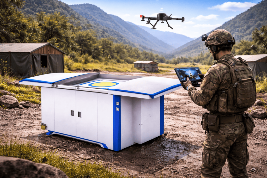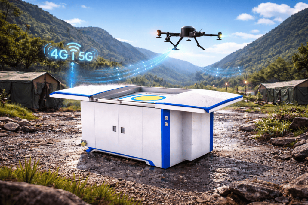 The drone dock station is optimized for military environments. With its fast-charging connectors and robust construction, it ensures rapid turnaround times for drones in the field, minimizing downtime and maximizing operational readiness. The station can autonomously charge or swap drone batteries, allowing military units to focus on their missions without worrying about manual battery changes.