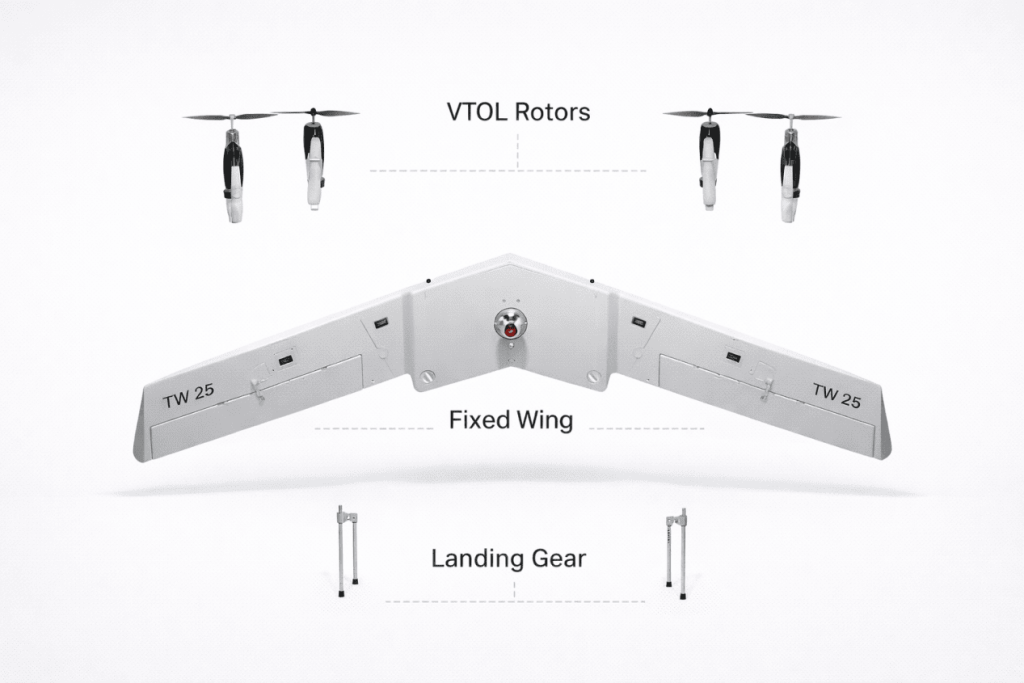 Combining vertical takeoff and landing with efficient fixed-wing flight, the fixed wing UAV offers unmatched flexibility. It can take off in confined spaces and smoothly transition between hovering and cruising, adapting easily to dynamic mission requirements and complex terrains.