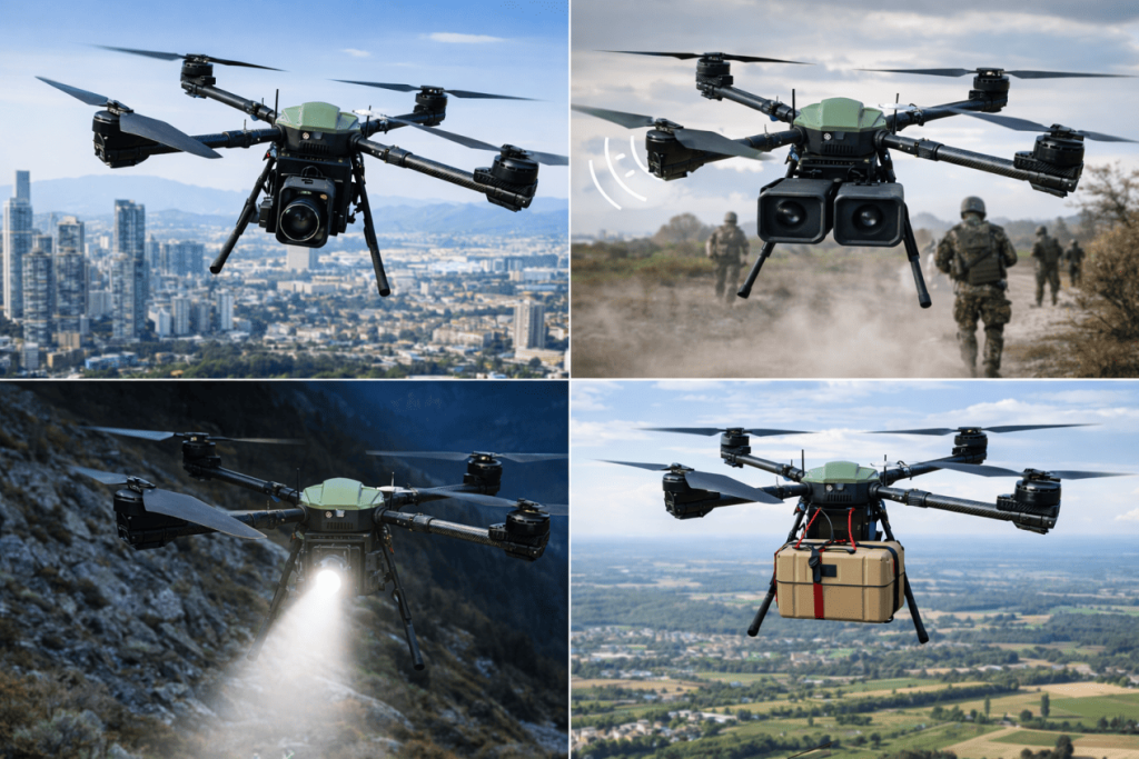 The multirotor drone delivers reliable long-endurance performance across demanding missions. Supporting cameras, loudspeakers, lighting, and payload delivery, it excels in surveillance, emergency response, inspection, and tactical operations, even in complex or interference-prone environments.