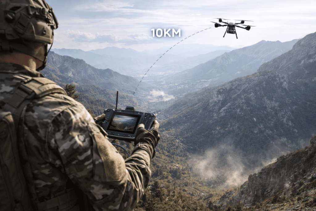 With up to 30 minutes of endurance and a control range of 10km, the tactical drone enables wide-area monitoring and long-distance mission execution. It supports continuous surveillance, border patrol, and target tracking, helping units maintain real-time situational awareness while minimizing redeployment frequency.