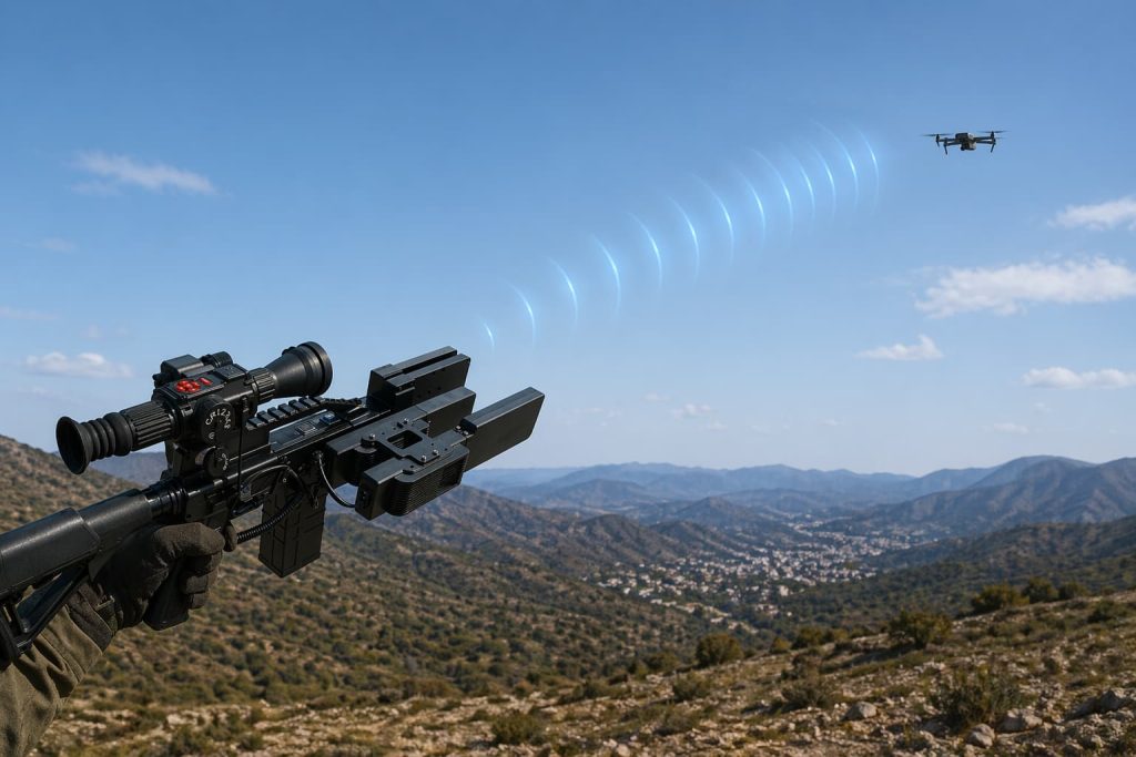 A handheld anti drone jammer designed for long-range UAV disruption in tactical environments. Ideal for military patrols, perimeter defense, and special operations, it enables fast-response airspace control in complex security and public safety scenarios.