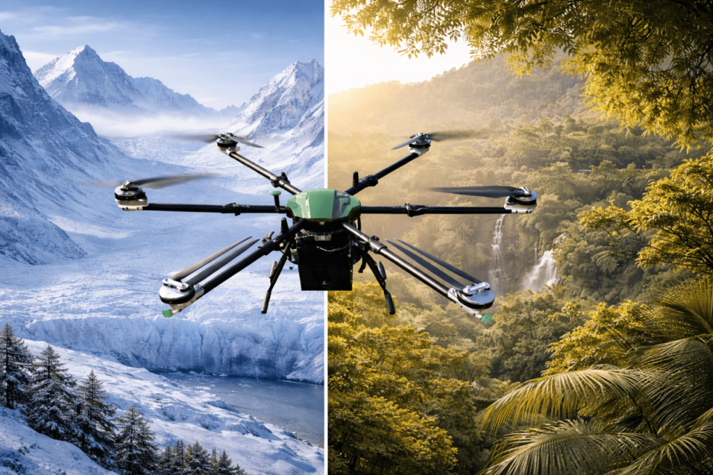 Military and emergency missions often take place in difficult outdoor conditions. With IP55 protection, 6-level wind resistance, and an operating temperature range of -10°C to 50°C, the hexacopter drone is designed for dependable use across varied climates and terrains. Whether deployed in cold weather, hot environments, or windy open areas, it helps maintain consistent mission performance and reduces operational limitations in the field.
